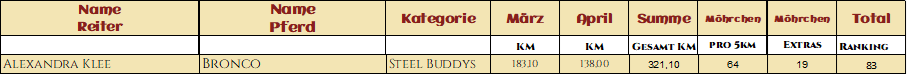 15* Tanja Romahn mit ihrem zuckersüßen Nagano  kamen auf 290,04km und holten sich zusammen mit ihren Extraaufgaben 131 Möhrchen