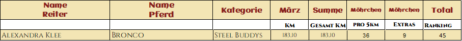 2* Melly mit ihrem tollen El Dorado legten zusammen 425,15km zurück und sicherten sich mit ihren Extraaufgaben 161 Möhrchen